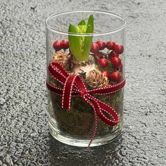 Svibel i glassvase med dekor